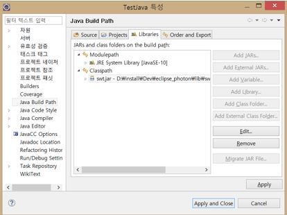 위젯 툴킷(Standard Widget Toolkit)으로 이클립스에서 사용하고 있는 자바기반의 위젯 툴킷(Widget Toolkit)