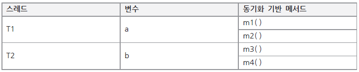 T2가 변수 b를 변하는 동기화기반 메서드 m3,m4 인경우