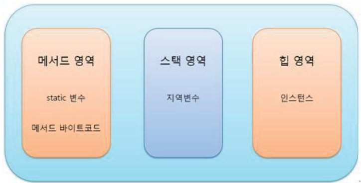 메모리 3개(큰방) : 메서드(static), 스택(로칼 -모든 프로그램에 다 있고 반환됨), 힙(인스턴스- 데이터만)