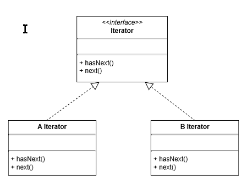 Iterator 인터페이스의 위의 클래스 다이어그램에 있는 3가지 메서드를 가진다.