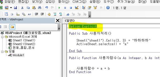 VB에서는 기본적으로 변수 선언없이(묵시적) 으로 사용가능하지만, 코딩이 길어질때 오히려 명시적으로 하는것이 좋습니다.