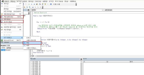 ex1) Debug.Print에서 값을 출력하면 나옴.