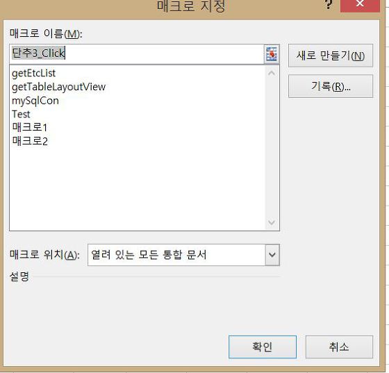 매크로 지정화면 : 매크로 지정후 확인하면 앞으로 해당 매크로 실행됨